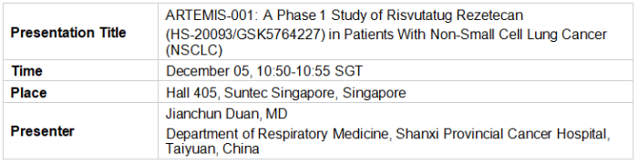 ESMO ASIA | HANSOH PHARMA ANNOUNCES MINI ORAL PRESENTATION OF PHASE 1 STUDY OF RISVUTATUG REZETECAN (HS-20093, A B7-H3-TARGETED ADC) IN PATIENTS WITH NON-SMALL CELL LUNG CANCER (NSCLC)